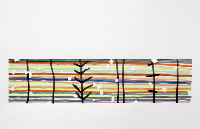 Bleistift, Tusche, Acryl, Ölkreide auf Papier